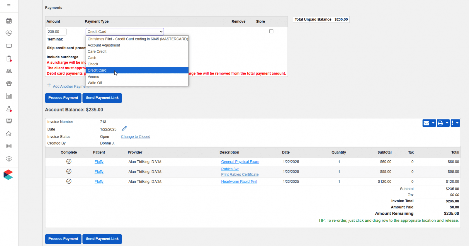 Payments, seamless integration with Covetrus practice management software imports charges directly into your client’s electronic files, which saves your staff time, provides added security and makes their end of day a breeze.